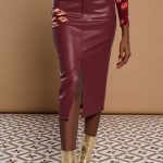 Falda de tiro medio. Estampado de pata de gallo en tonos camel, beige y burdeos. Forro interior. Cierre con cremallera oculta en costura.