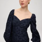 HENNA BLACK TOP – Top escote bardot nido de abeja