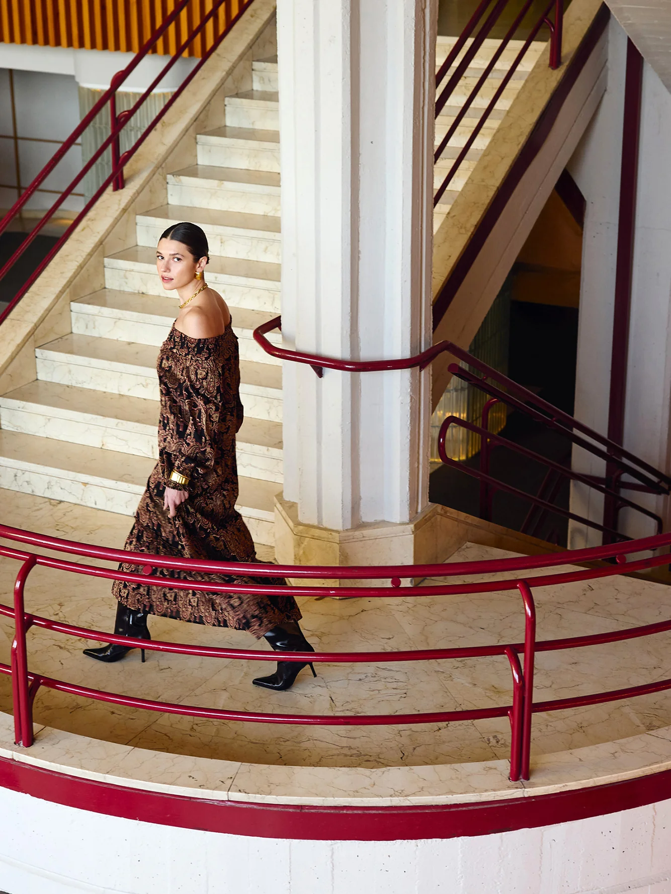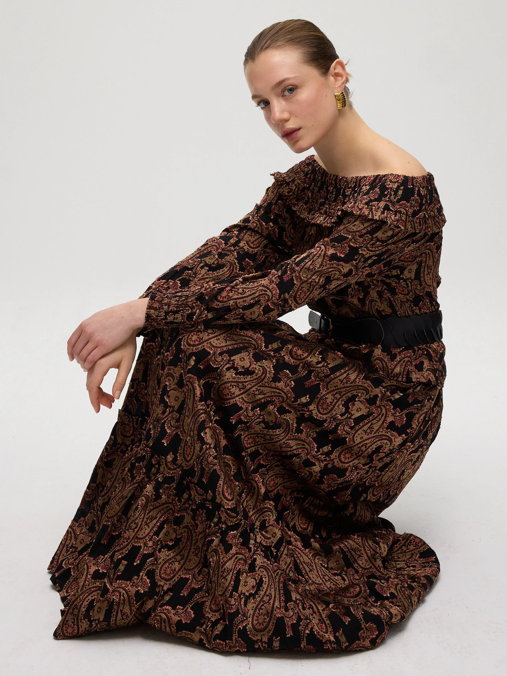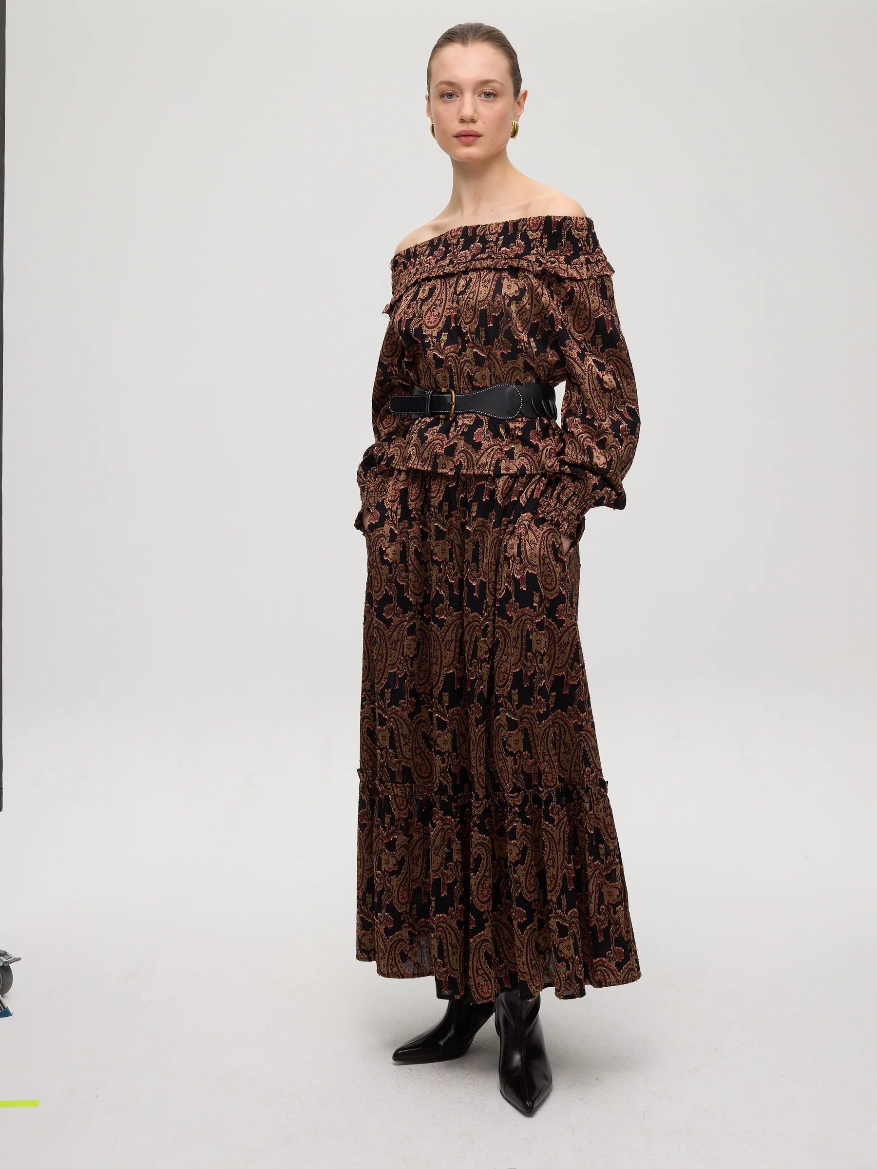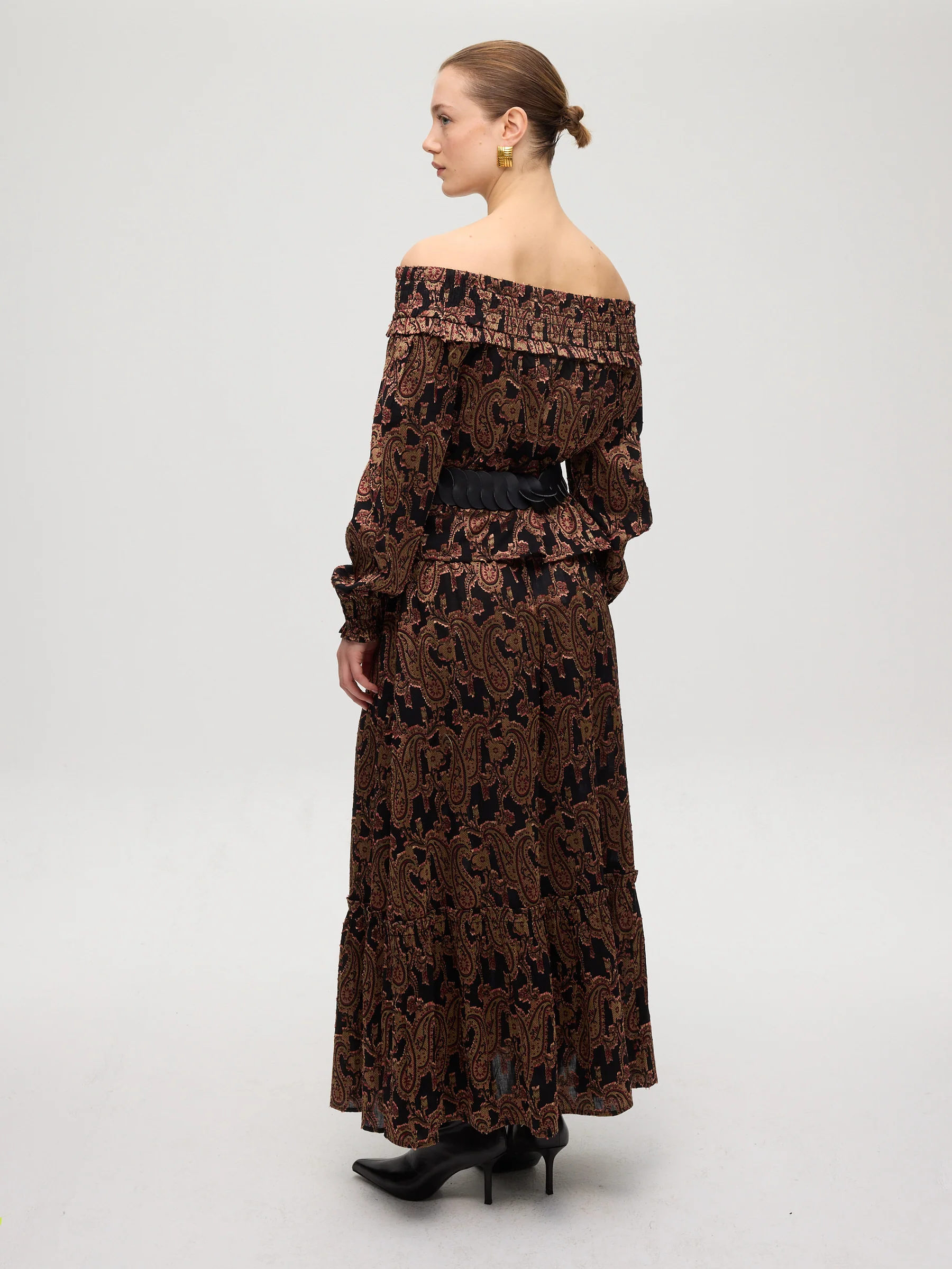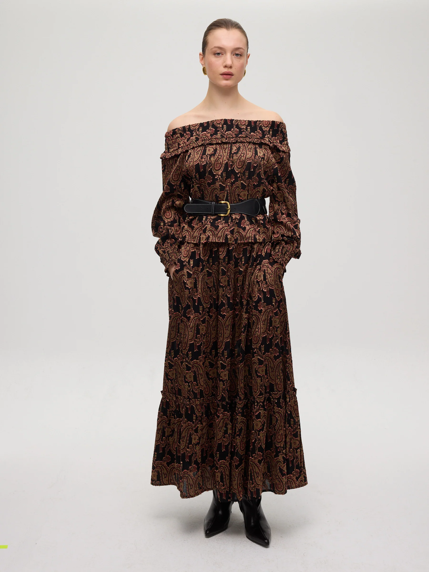 - Tejido pailsey tonos beige granate y negro