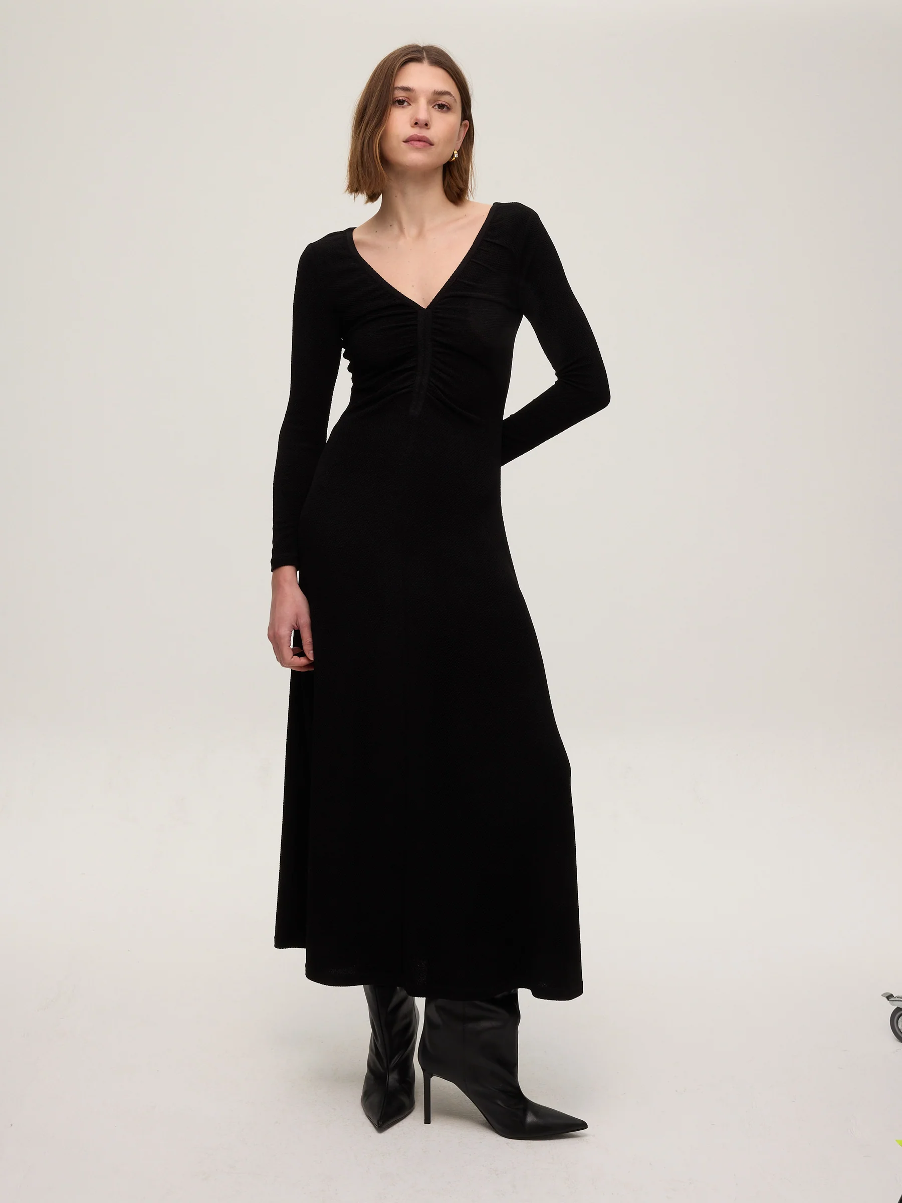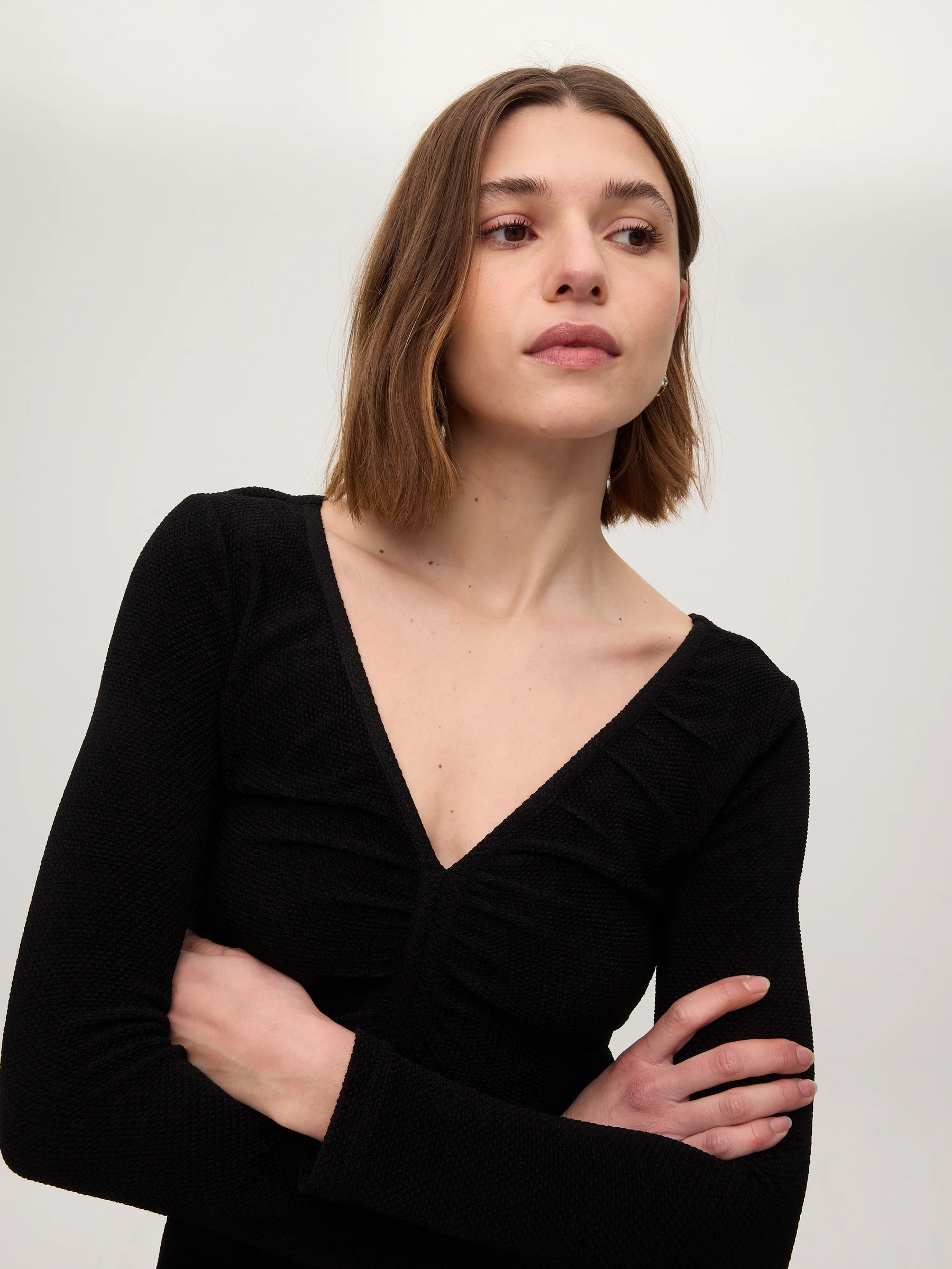 - Drapeado en el escote de pico