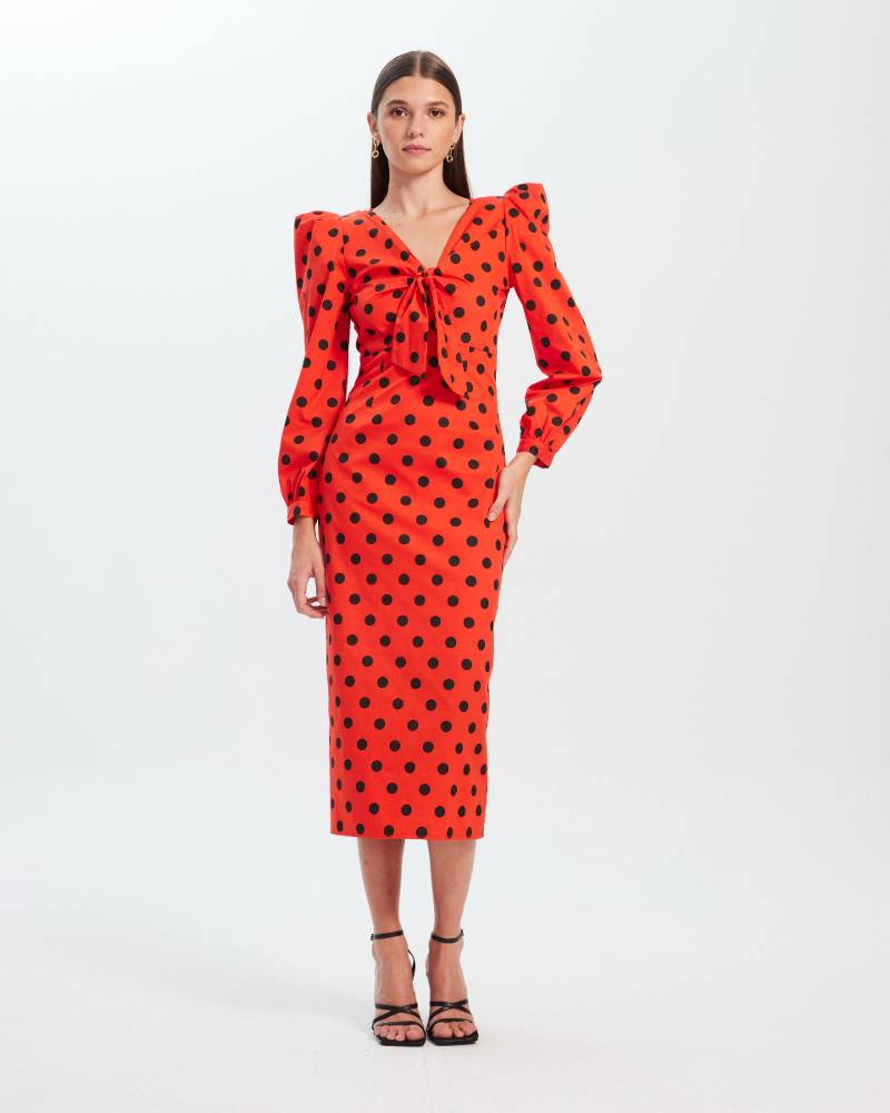 MANUELA DOTS – VESTIDO MIDI MANGA LARGA NUDO PECHO