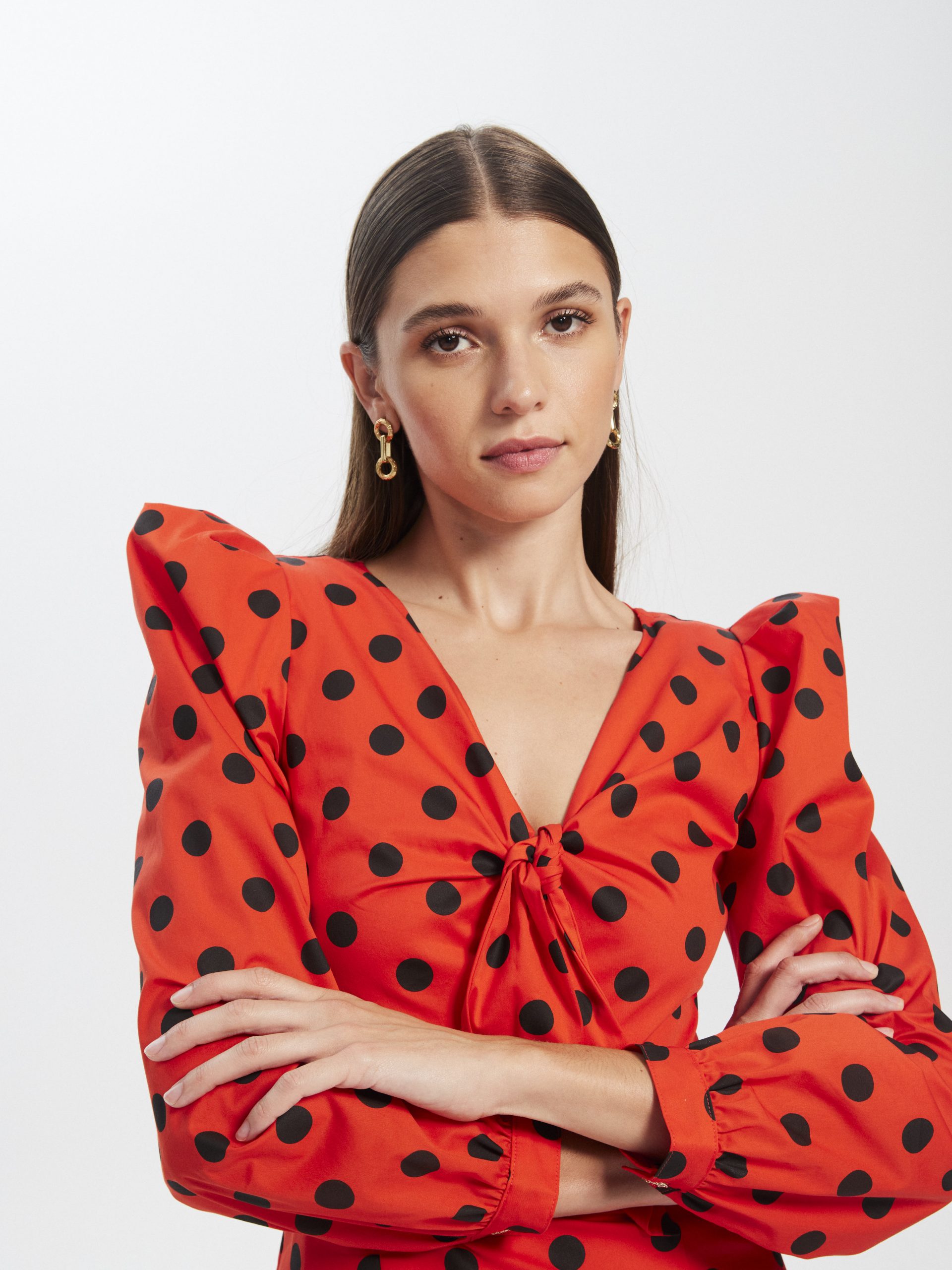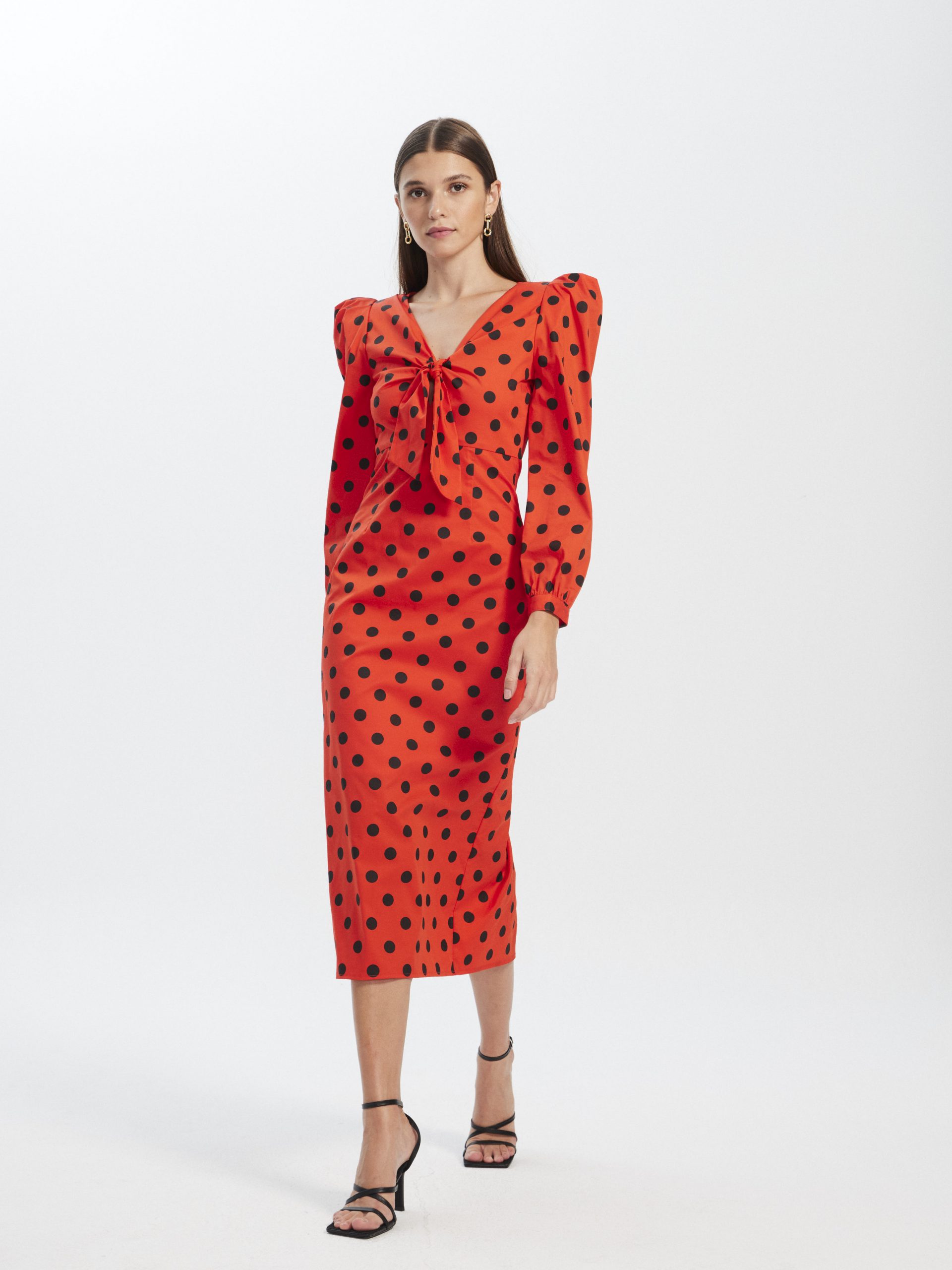 MANUELA DOTS – Vestido midi manga larga con nudo en el pecho