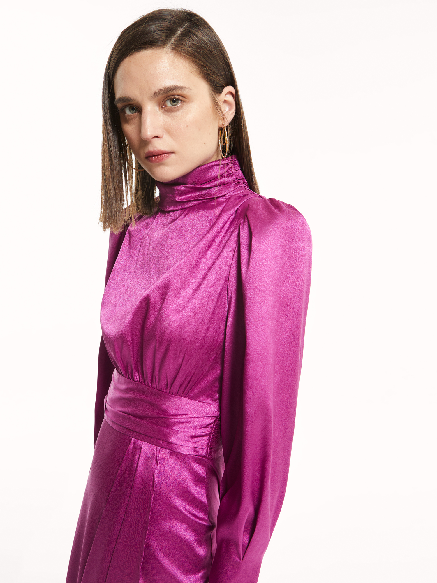 OPERA MAGENTA – Vestido cuello alto jacquard magenta